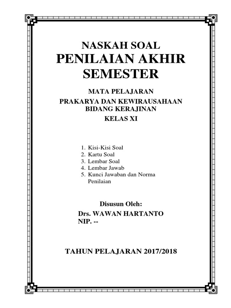 Kisi Kisi Us Prakarya Kelas Xi Semester Ganjil 408gonvm6oqx from doku.pub Tentunya warga sekolah telah mulai disibukan dengan mempersiapkan segala sesuatunya agar penilaian akhir semester genap dapat dilaksanakan dengan baik. Soal kelas 10 essay kewirausahaan semester jawaban 2 dan. Proses pembagian produk ke dalam beberapa jenis karakteristik dari sebuah produk yang diproduksi Soal pas uas pkwu kelas 10 semester 1 kurikulum 2013 revisi 2018. Setelah sebelumnya melaksanakan kegiatan ulangan/ penilaian tengah semester genap, bapak dan ibu kemudian harus menyiapkan siwa kelas 10 untuk kegiatan pat. Soal pas pkwu kelas 10 sma/mts kurikulum 2013 soal tahun 2020 : Sma negeri 4 muara teweh jumlah soal : Kisi kisi soal dan kunci jawaban pas prakarya smp kelas 7 semester ganjil didno76 com.