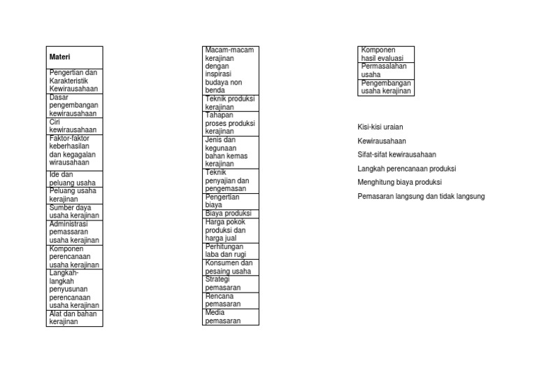20 soal kewirausahaan materi bahan keras. Soal yang admin bagikan untuk kegiatan pas uas semester 1 ini terdiri dari. X / mia & iis alokasi waktu : Masih dalam tema yang sama juga yaitu penyusunan soal kali ini saya akan bagikan contoh kisi kisi soal yang bisa diedit sendiri. Tentunya warga sekolah telah mulai disibukan dengan mempersiapkan segala sesuatunya agar penilaian akhir semester genap dapat dilaksanakan dengan baik. Pemerintah daerah provinsi jawa barat dinas pendidikan cabang dinas pendidikan wilayah iv sma negeri 1 campaka jl. Kisi soal prakarya kelas 10. Kompetensi inti 3, 4 kompetensi dasar materi uji. Sma n 1 tegaldlimo kelas : Referensi pangan awetan nabati nusantara. Sma negeri 4 muara teweh jumlah soal : Jul 06 2020 posted in seni budaya umum tagged buku prakarya kelas 8 semester 2 kisi kisi ukk prakarya kelas 8 leli mendapatkan tugas dari gurunya prinsip pengolahan limbah terdiri dari soal pas prakarya kelas 8 semester 1 soal pas prakarya kelas 8 semester 2 soal pilihan ganda prakarya kelas 8 semester 1 dan kunci jawaban soal prakarya kelas 7. Xii mipa/ips jumlah soal :